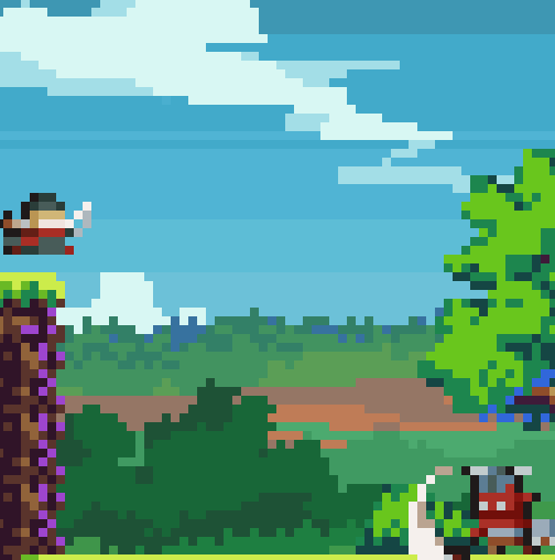 Also, the art. Although I used ready-made assets, they were around 16x16 in size. To show a distant view, I needed an 8x8 version. I had to redraw it manually. Simply resizing the image resulted in a very poor quality version. It only suited the background, and even then, I would like to improve many areas.